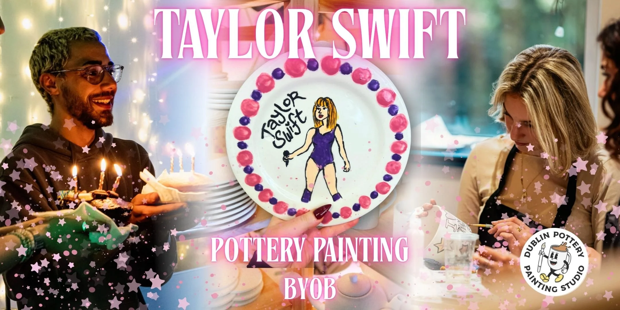 Grab your besties and your fave drink for a BYOB pottery night full of Taylor Swift vibes! Paint, sing, and create something totally enchanted! 💕